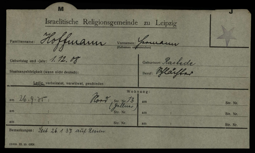 Siegfried Hoffmann, Sohn von David und Selma Hoffmann, war mit einer christlichen Frau verlobt, als die Nationalsozialsten 1933 an die Macht kamen. Eine solche Beziehung galt in Rastede schon zu diesem Zeitpunkt als “Rassenschande”, das Paar wurde schikaniert und ausgegrenzt. Daher bereitete Siegfried Hoffmann die Ausreise vor und fuhr dazu im September 1935 nach Luxemburg. Als er zurückkehrte, waren die Nürnberger Gesetze erlassen worden, welche Beziehungen zwischen jüdischen Menschen und sogenannten “Ariern” unter Strafe stellten. Siegfried Hoffmann wurde wegen Geschlechtsverkehr mit einer “Arierin” denunziert und verhaftet. Er kam ins Untersuchungsgefängnis der Stadt Oldenburg. Dort starb er im Januar 1936 – kurz vor seinem dreißigsten Geburtstag – wohl an den Folgen von Misshandlungen. Die Justiz gab als Todesursache an, er habe Selbstmord begangen. Das Grab von Siegfried Hoffmann befindet sich auf dem jüdischen Friedhof Westerstede.