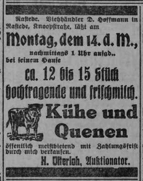 Vahlenkamp, Werner: Von der Achtung zur Ächtung: Die Geschichte der Rasteder Juden. Oldenburg 1989, S. 42. (Das Buch kann in der Gemeindebücherei Rastede ausgeliehen werden.)